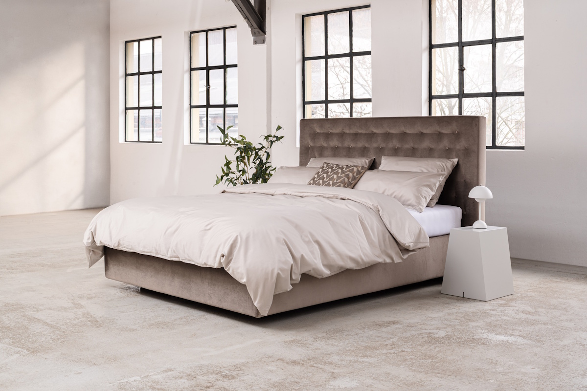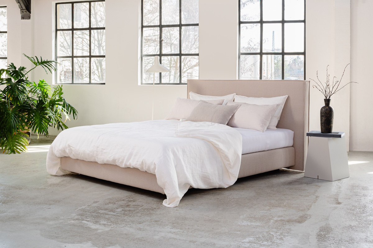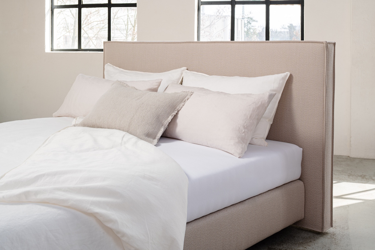 Das charakterstarke Kopfteil Plume definiert die moderne Formensprache dieses Bettes. Der feine Stehsaum unterstreicht das zeitgemäße, moderne Design. Eine hochwertige Boxspringunterfederung und die darauf abgestimmte Premium Tonnen-Taschenfederkernmatratze gewährleisten einen erstklassigen Schlafkomfort.